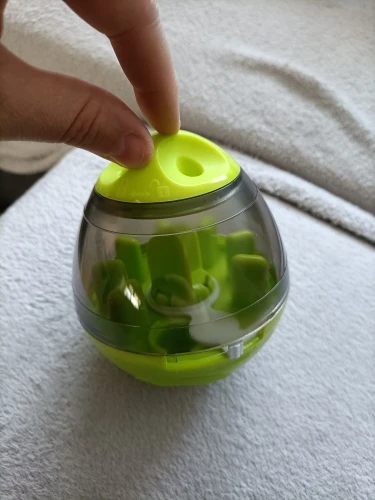 Separates For Easy Cleaning: The interactive toy ball easily unscrews to add food or treats, as well as to make cleaning simple. Hand wash each part with warm, sudsy water. Rinse and dry before filling.